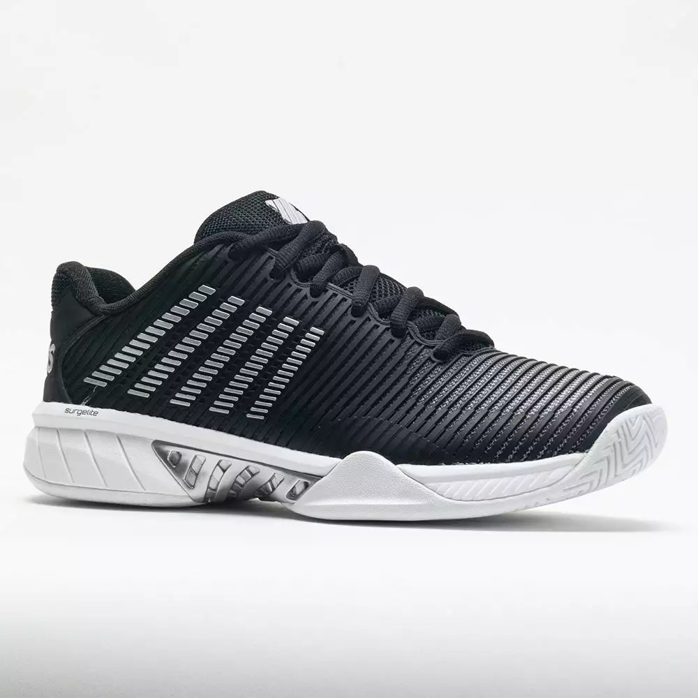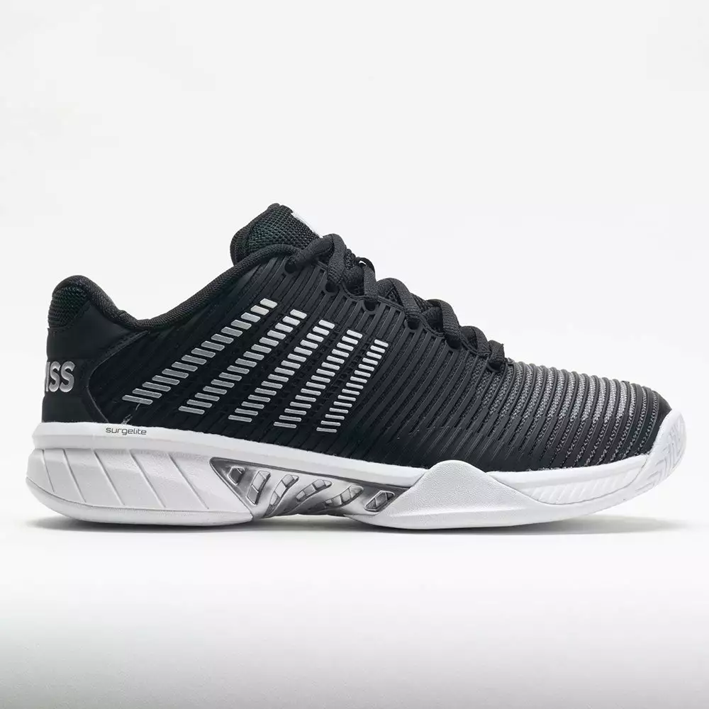 Stay quick and agile on the court in the K-Swiss Hypercourt Express 2! Inspired by lightweight running shoes, these tennis kicks give you the speed to reach any shot. From the strong and flexible DuraWrap upper to the soft and cushioned Surgelite midsole, the K-Swiss Hypercourt Express 2 helps players conquer the court!