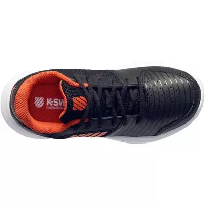 These shoes are perfect for junior tennis players starting out in the game looking for long-lasting support. Colour: Black / Orange Built on the top-selling Express platform, the new Court Express is a perfect option for a developing player starting out in the sport, or playing part-time looking for comfort and support. Leather Upper Textile Collar Lining Rubber Outsole Die-Cut EVA Sock Liner Lace Closure