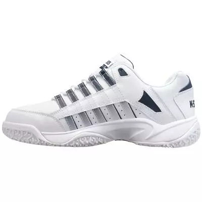 The new Court Prestir Omni could be considered the Mercedes Benz of the tennis world, with the design inspired from the legendary Ultrascendor 7.0. This shoe features a traditional leather styling combined with modern comfort and performance. Exquisite materials, rich and refined attention to detail and craftmanship that rivals Swiss watch makers are what set this shoe apart from all others. This makes the Court Prestir the ideal combination of luxury and performance. The sole of the shoe is perfect for surfaces including grass. Colour: White / Navy Product Details AÖSTA II - Rubber compound with high density outsole provides unsurpassed durability from heel to toe. K-EVA - Special formula EVA to provide maximized cushioning and enhance durability of the midsole