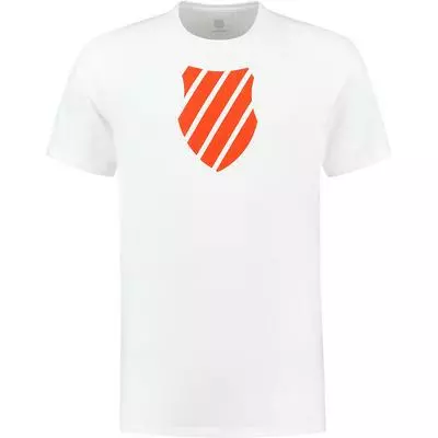 Keep it nice and casual with the K-Swiss Hypercourt Logo Tee 2 that has a simplistic, yet bold sporty design. The super soft material will be a blessing for those long days spent on the court! Colour: White / Spicy Orange Product Details Suitable for performance and recreational players High wearing comfort during effort Modern neckline Graphic design of K-Swiss shield on chest Can be used on and off the court