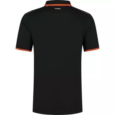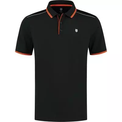 The K-Swiss Hypercourt Polo 4 gives of the perfect look for your tennis matches and feels great on the court with is high quality material, durability and fit. The wearing comfort is guaranteed for the full duration of your time on court. Colour: Jet Black / Spicy Orange Product Details Suitable for performance and recreational tennis players Graphic design Ribbed collar and sleeve cuffs Great wearing comfort Three-button closure Excellent fit