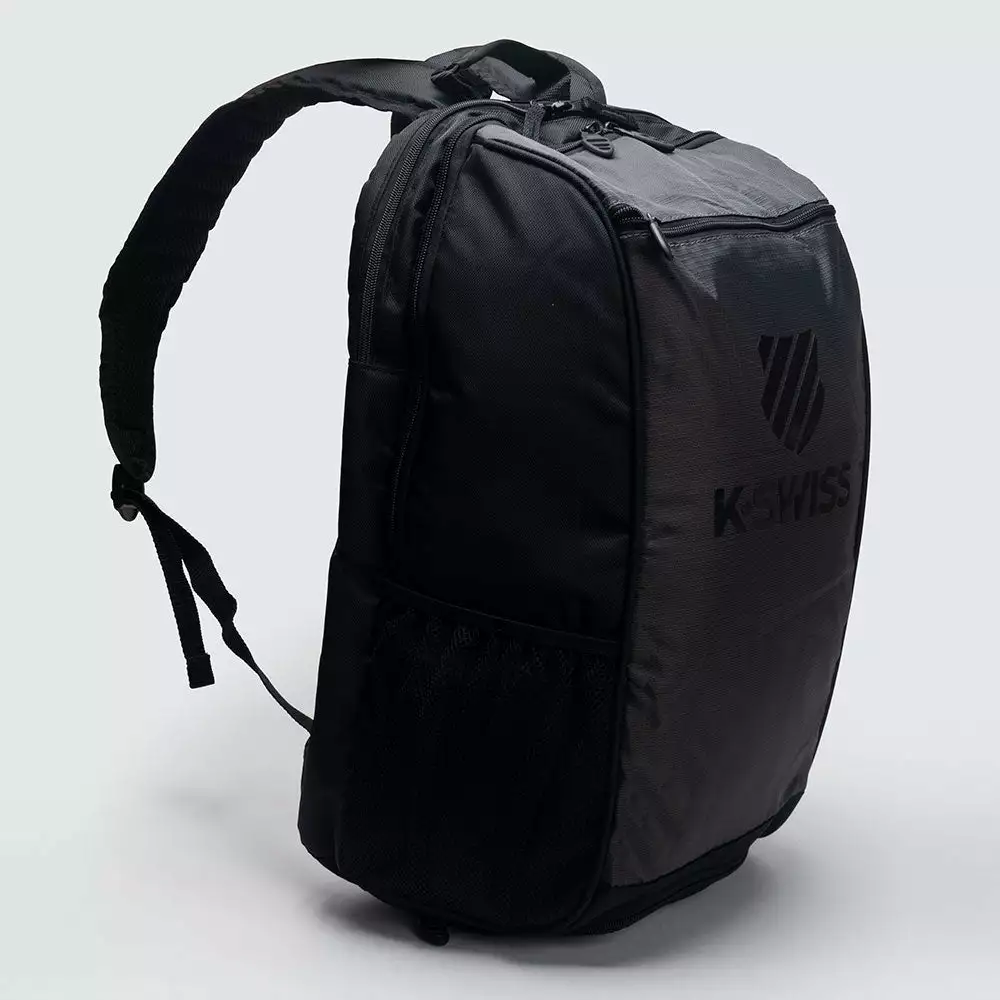 The K-Swiss Tennis Backpack 2 Black is for players who deserve quality and performance for everyday use. This backpack features a racquet-specific compartment that holds two racquets with their handles to the side. Organize your gear in the main compartment with internal pockets while storing shoes or dirty gear in the large pocket on the bottom. Two accessory pockets on the front provide easy access to essentials, and padded adjustable backpack straps offer comfortable carrying options.
