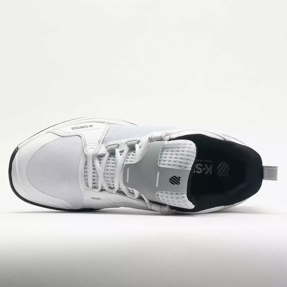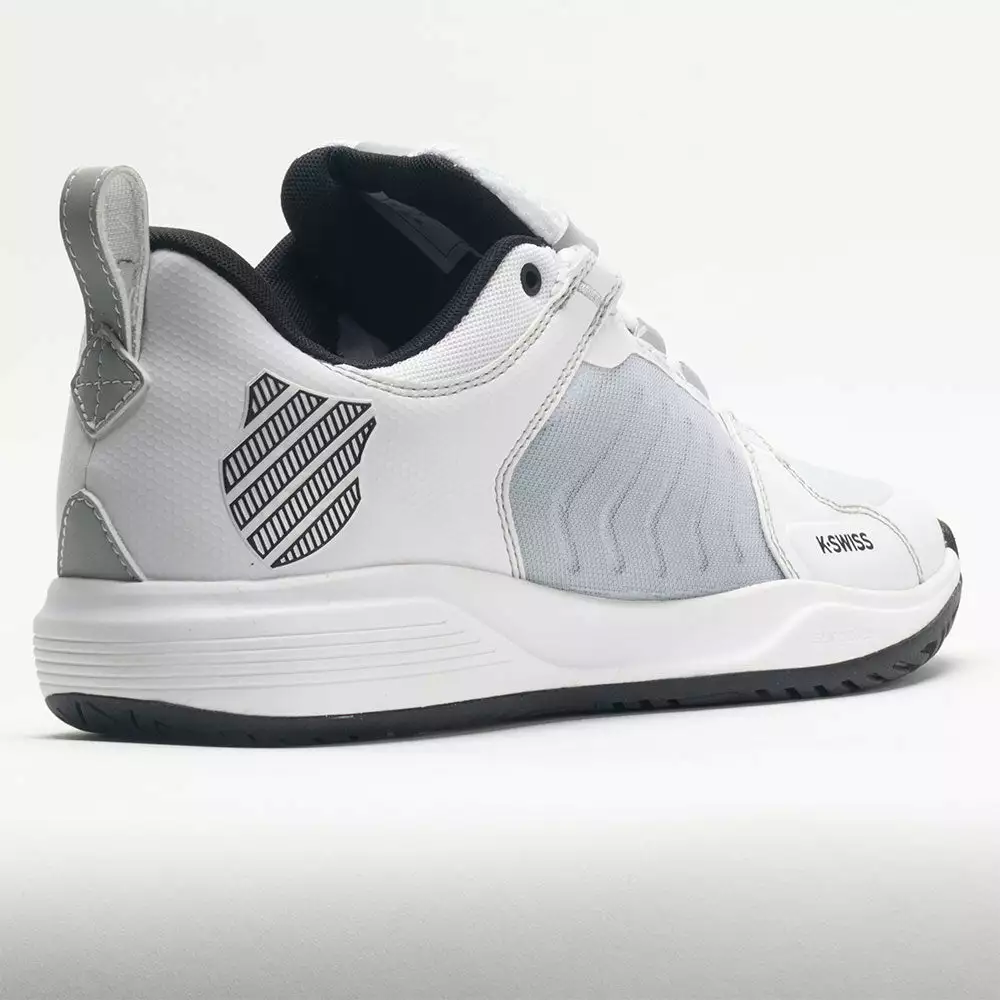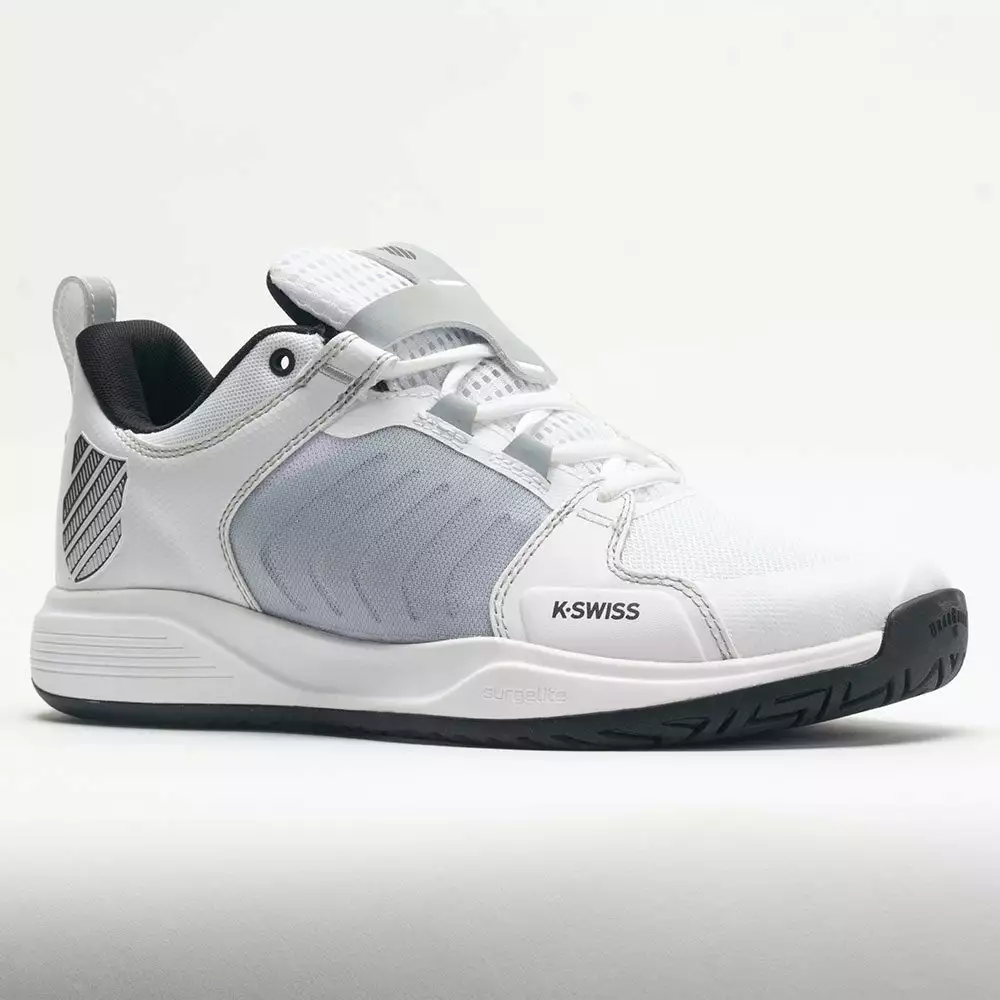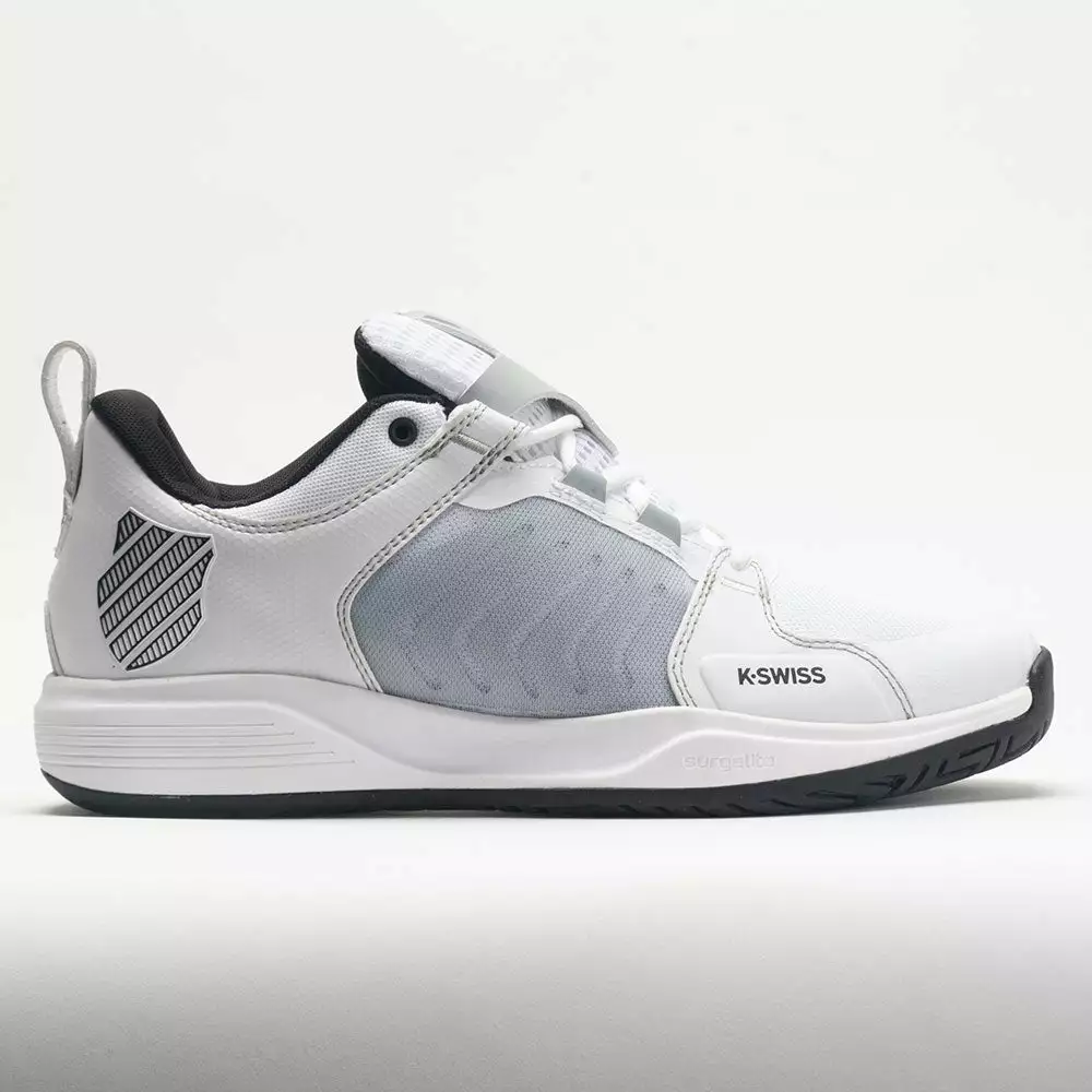 The K-Swiss Ultrashot Team provides support and durability for various playing surfaces. The latest member of the Ultra family, this budget-friendly version of the Ultrashot 3 tennis shoe offers signature stability and comfort at a reduced cost. Slide into a light and breathable mesh upper with translucent paneling for sophisticated style. Stay energized during long matches on the lightweight Surge 7.0 midsole. Key visual elements like the five chevron stripes on the quarter and enlarged shield logo on the heel create a tennis/lifestyle vibe every time you take the court.
