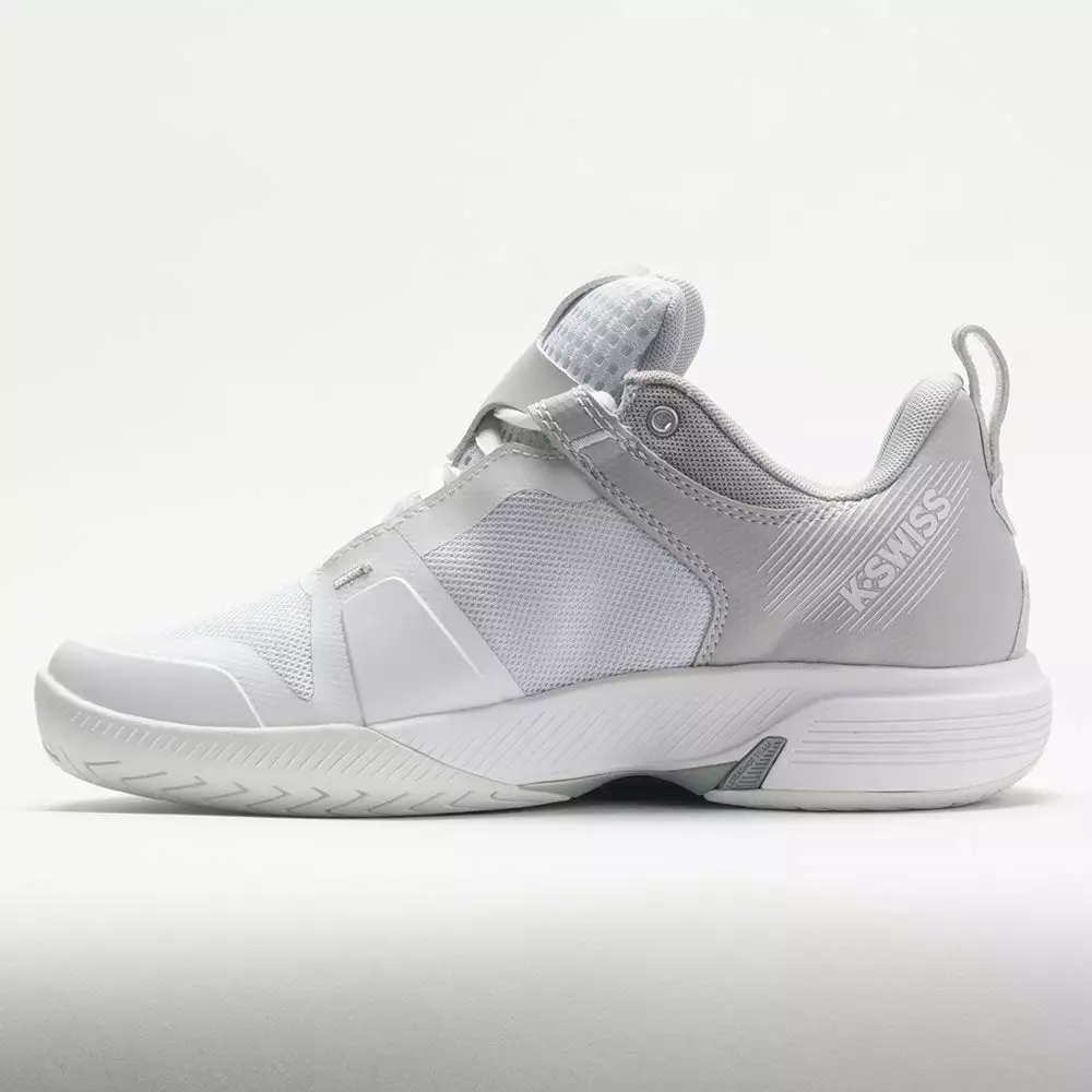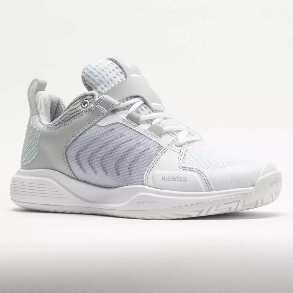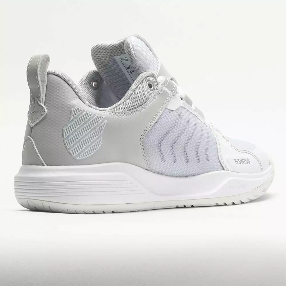 The latest member of the Ultra family, the K-Swiss Ultrashot Team provides support and durability for various playing surfaces. This budget-friendly version of the Ultrashot 3 tennis shoe offers signature stability and comfort at a better value. Slide into a light and breathable mesh upper with translucent paneling for sophisticated style. Stay energized during long matches on the lightweight Surge 7.0 midsole. Key visual elements like the five chevron stripes on the quarter and enlarged shield logo on the heel create a tennis/lifestyle vibe every time you take the court.